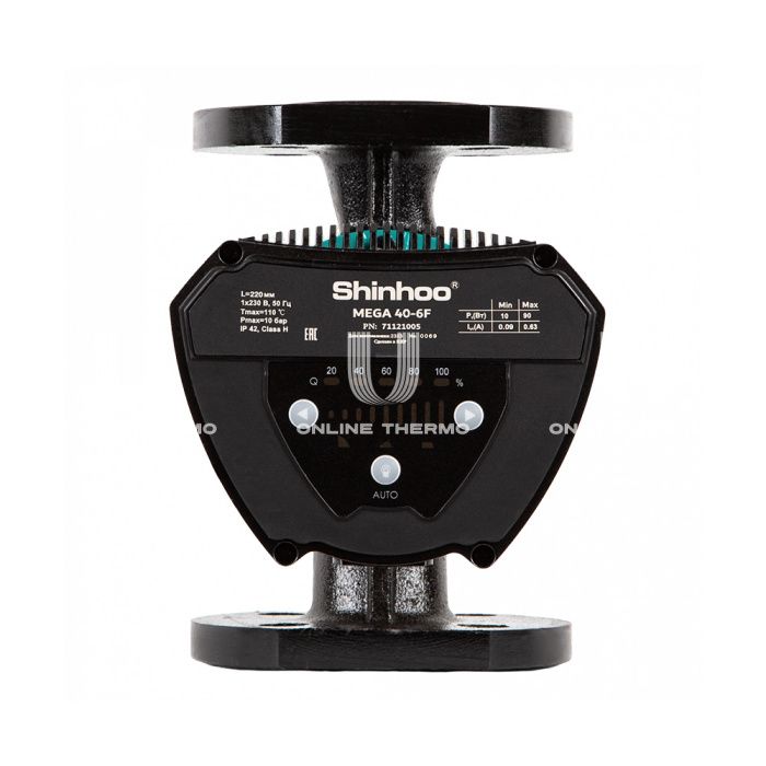 Насосы Shinhoo серии MEGA являются более совершенным и функциональным аналогом циркуляционных насосов серии BASIC. Насосы MEGA предназначены для обеспечения циркуляции жидкостей в отопительных системах с переменным расходом, где желательно задавать оптимальную рабочую точку насоса в целях снижения энергозатрат. Помимо этого, насос может применяться в системах кондиционирования и охлаждения, системах ГВС. Насос предназначен для перекачивания чистых, неагрессивных жидкостей, не содержащих твёрдых включений или волокон, которые могут оказывать механическое или химическое воздействие на насос. Насосы серии MEGA являются насосами с «мокрым» ротором, т.е. насос и двигатель составляют единый блок без торцевого уплотнения вала. В качестве смазки для подшипников используется перекачиваемая жидкость. Насос обладает 19 режимами управления с автоматически изменяющейся скоростью вращения вала двигателя, 9 режимами с постоянной скоростью и режимом под управлением внешнего контроллера по ШИМ-сигналу. Технические характеристики: температура перекачиваемой жидкости, °С: от -30 до +110; температура окружающей среды, °C: 0-40; размер всасывающего патрубка: DN 40; размер напорного патрубка: DN 40; уровень шума, дБ: ≤45; класс изоляции (IEC 85): H.
