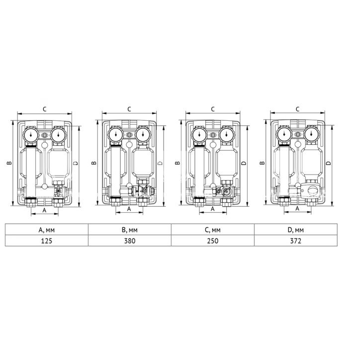 Насосные группы быстрого монтажа Uni-Fitt предназначены для создания много-контурных систем отопления с индивидуальными насосами в отдельных контурах. Такие системы характеризуются высокой стабильностью работы, повышенными комфортностью и надёжностью. Модульная конструкция обеспечивает компактность и простоту монтажа. Насосные группы поставляются в четырёх вариантах, в каждом варианте – с насосом или без (в этом случае требуется установка соответствующего насоса): Модель 490: насосные группы без смесителя мощностью до 50 кВт – для подачи теплоносителя в высокотемпературные контуры системы: радиаторного отопления, теплообменник горячего водоснабжения и т.д. Подача осуществляется c помощью циркуляционного насоса. Насос может работать как независимо, так и по команде от термостата или систем управления автоматики котла (не поставляется). Модель 491: насосные группы с термосмесительным клапаном мощностью до 14 кВт – для подачи теплоносителя в низкотемпературные контуры отопления, например: радиаторного отопления или для тёплого пола. Контроль и автоматическое поддержание заданной температуры теплоносителя осуществляется в термосмесителе смешением теплоносителя из подающей и обратной линии. Модель 492: насосные группы с трёхходовым смесительным клапаном мощностью до 31 кВт – для использования в контурах, где предусмотрено регулирование температуры подачи, таких как радиаторное отопление, тёплые полы, системы нагрева воды и др., в том числе в системах с погодозависимым управлением. Для автоматического регулирования требуется установка сервопривода на смесительный клапан. Модель 493: насосные группы с трёхходовым смесительным клапаном и приводом, мощностью до 31 кВт – для использования в контурах, где предусмотрено регулирование температуры подачи, таких как радиаторное отопление, тёплые полы, системы нагрева воды и др., в том числе в системах с погодозависимым управление.
