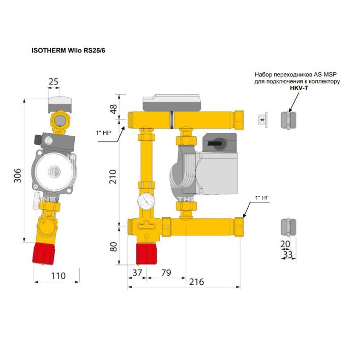 Насосно-смесительный узел (группа автономной циркуляции) для напольного отопления Watts Isotherm 10023372 1" с насосом Wilo RS 25/6-3
