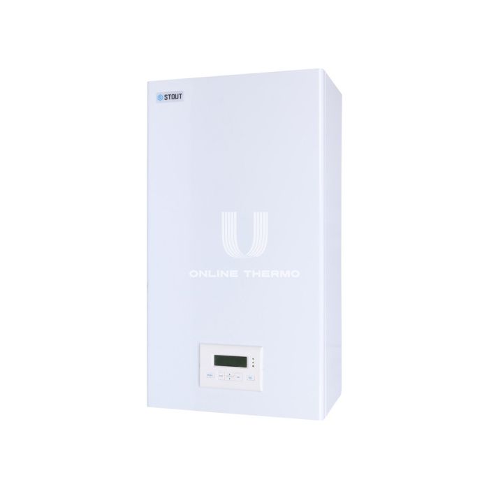 Электрический котел STOUT является низкотемпературным источником тепловой энергии для индивидуальных систем теплоснабжения зданий различного назначения и предназначен для применения в качестве основной или резервной установки совместно с другими теплогенераторами на газообразном или жидком топливе. Приготовление горячей воды для системы горячего водоснабжения (ГВС) электрокотел может осуществлять только в сочетании с емкостным водонагревателем косвенного нагрева. номинальная мощность – от 5 до 27 кВт; питающее напряжение – 220 В или 380 В (в зависимости от мощности котла); максимальное рабочее давление теплоносителя – 0,3 МПа; максимальная температура нагрева теплоносителя – 90°С.