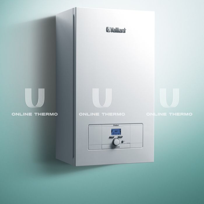 Настенный электрический котел Vaillant серии eloBLOCK VE 21/14 мощностью 21 кВт используется для отопления. Возможна установка в жилой зоне, а так же использование в системах «теплый пол». Основные свойства: современный дизайн и микропроцессорное управление; простое и удобное управление одной клавишей; плавное изменение мощности (на 1,2 или 2,3 кВт ) с умеренной нагрузкой на нагревательный элемент увеличивает срок службы; защита от замерзания котла и бойлера; управление температурой теплоносителя через интерфейс котла; цифровая шина передачи данных eBUS; возможность управления через HDO-сигнал или «понижающий» переключатель; индикация настроек через светодиодный дисплей; возможность подключения бойлера косвенного нагрева; антиблокировка насоса; встроенный расширительный бак; встроенный механический манометр; гарантия 2 года.