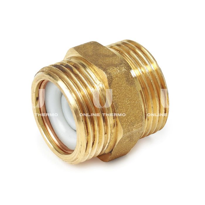 Ниппель резьбовой равносторонний со встроенным обратным клапаном Giacomini серии R189V изготавливается из латуни и предназначен для создания герметичного постоянного или разъемного соединения трубопроводов, а также присоединения элементов запорно-регулирующей арматуры. Ниппель представляет из себя цилиндр с резьбой, нарезанной с двух сторон на внешней его части, на каждом ниппеле имеется специальный участок шестигранной формы для его удобного монтажа гаечным ключом. Данные изделия обычно используют на трубопроводах холодного питьевого водоснабжения, горячего водоснабжения и хозяйственного водоснабжения.