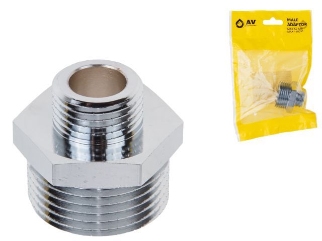 Ниппель ред. 1' нар. х 1/2' нар. ХРОМ, AV Engineering (инд. упак.)(Латунь, макс. 16 бар, макс. 100 °С)