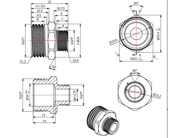 Ниппель ред. 1/2' нар. х 1/4' нар., AV Engineering (инд. упак.)(Латунь, макс. 16 бар, макс. 100 °С)