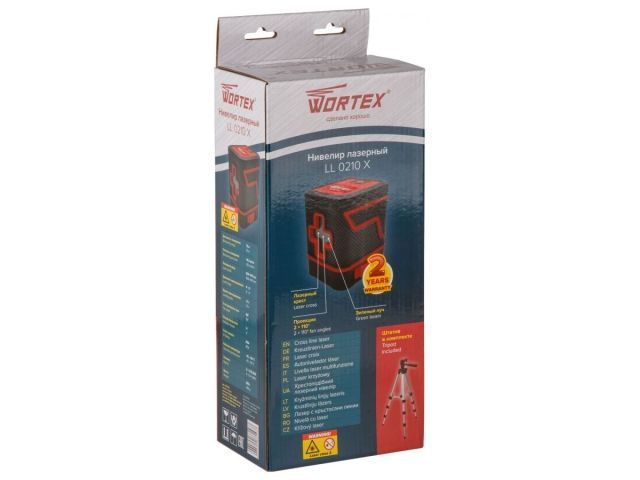 Нивелир лазерный Wortex LL 0210 X со штативом в кор. 2х110°, до 15 м, +/- 0.3 мм/м, зеленый(резьба 1/4', штатив 65 см в комплекте)