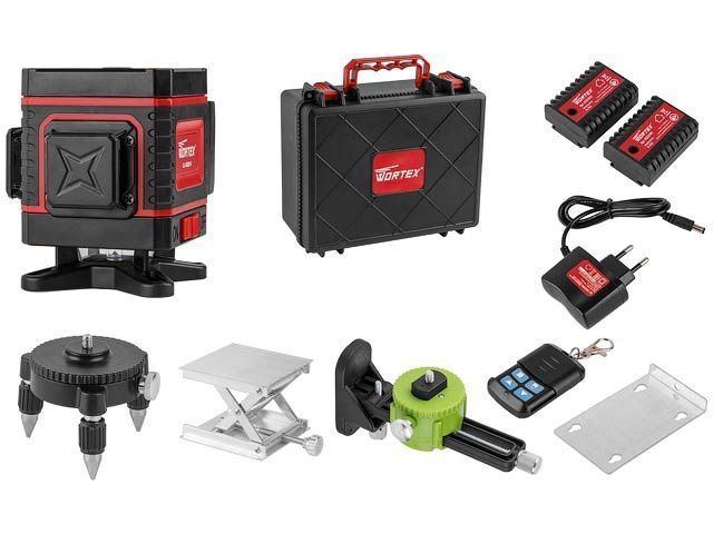Нивелир лазерный WORTEX LL 0330-1 в чем. + аксессуары 3х360°, до 25 м, +/- 0.3 мм/м, зеленый(резьба 1/4')