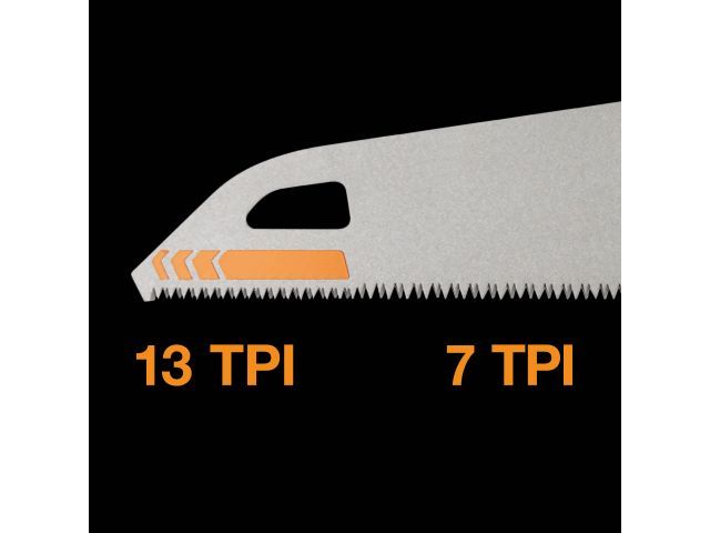 Ручная пила Fiskars Pro Power Tooth для грубой резки имеет лезвие с тройной заточкой для более быстрого и мощного реза. Стойкое к ржавчине покрытие лезвия с низким коэффициентом трения сохраняет рабочие характеристики лезвия. Толщина лезвия 0,9 мм обеспечивает стабильность Направляющие под углом 45 и 90 градусов позволяют наносить разметку на месте для эффективной резки лезвие 55 см Отверстие для хранения