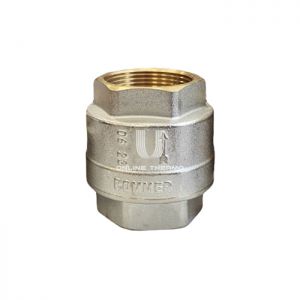 Клапан обратный пружинный муфтовый с пластиковым седлом ROMMER серии RVC-0002 предназначен для предотвращения обратного потока жидкости или газов в трубопроводных системах различного назначения. В качестве транспортируемой среды могут использоваться сжатый воздух и жидкости не агрессивные к материалам клапана. Обратные клапаны однонаправленные - управляют потоком в одном направлении (указано стрелкой на корпусе). Устройство и принцип действия клапана: корпус и полумуфта с седлом, оборудованы направляющими, по которым движется шток. Напор воды сжимает пружину тем самым открывает запорный механизм - уплотнение, зафиксированное на штоке. Когда напор падает, пружина производит возврат запорного механизма, прижимает уплотнение к седлу и перекрывает проток среды в обратном направлении. Клапан может быть установлен в любом положении – горизонтальном, вертикальном, наклонном с соблюдением направления движения транспортируемой среды (стрелка направления потока). Технические характеристики: диапазон температуры рабочей среды без образования пара, °С: от -20 до +90; температура транспортировки и хранения, °С: от -20 до +50; рабочая среда: вода, водный раствор гликолей до 30 %; минимальный перепад давлений открытия клапана, бар: 0,01; минимальный перепад давлений закрытия клапана, бар: 0,0 (закрывается усилием пружины).
