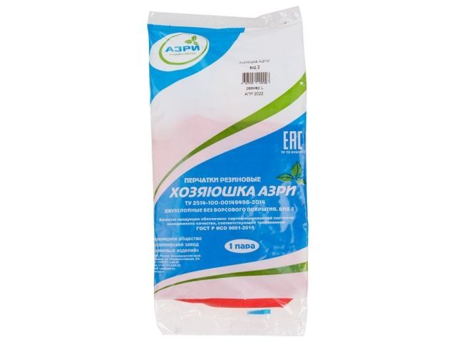 Перчатки резиновые хозяйственные р-рL (двухслойные, вид 2) 'Хозяюшка АЗРИ'