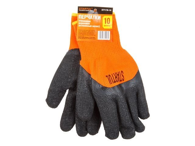 Перчатки утепленные акриловые, латексное рельефное покрытие, 10 р-р STARTUL(3/4 облив)