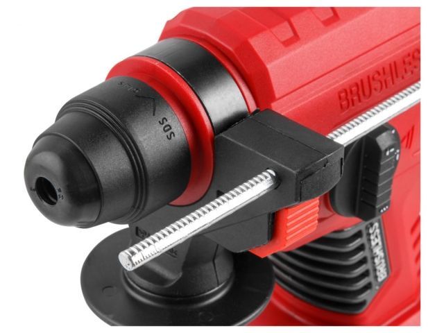 Модель имеет бесщеточный двигатель, что продлевает срок службы инструмента в 2 раза, делает его на 30% мощнее при меньших размерах и весе, позволяет работать до 50% дольше на одном заряде аккумулятора. Перфоратор имеет металлическую накладку возле платы управления, для более эффективного охлаждения, что значительно увеличит срок его службы. Повышенная прочность ударного механизма обеспечит высокую производительность и повысит комфорт использования. Малый вес и компактные размеры делают данный перфоратор незаменимым при работе в труднодоступных местах без внешнего источника питания. Имеет три режима работы: сверление, сверление с ударом, долбление, а также функцию регулировки угла оснастки (механическое управление). Оснащен подсветкой, реверсом, эргономичной прорезиненной рукояткой. Инструмент входит в линейку WORTEX ALL1 на одном аккумуляторе, которая представлена более чем 50 моделями. Напряжение аккумулятора: 18 В; Тип аккумулятора: Li-ion; Номинальное число оборотов: 0-1550 обмин; Номинальное число ударов: 0-4950 удмин; Сила удара: 2,2 Дж; Макс. диаметр сверла при сверлении бетона: 20 мм; Макс. диаметр сверла при сверлении дерева: 26 мм; Макс. диаметр сверла при сверлении стали: 13 мм; Масса (без принадлежностей): 1,7 кг; Гарантийный срок - 2 года.