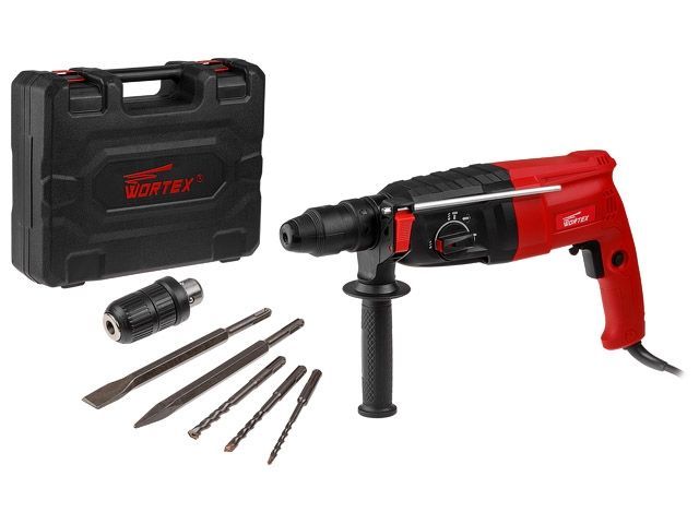 Перфоратор WORTEX RH 2829 в чем. + (2 зубила, 3 сверла) 900 Вт, 3.2 Дж, 28 мм, 4 режима, SDS-plus, Б(вес 3.4 кг)