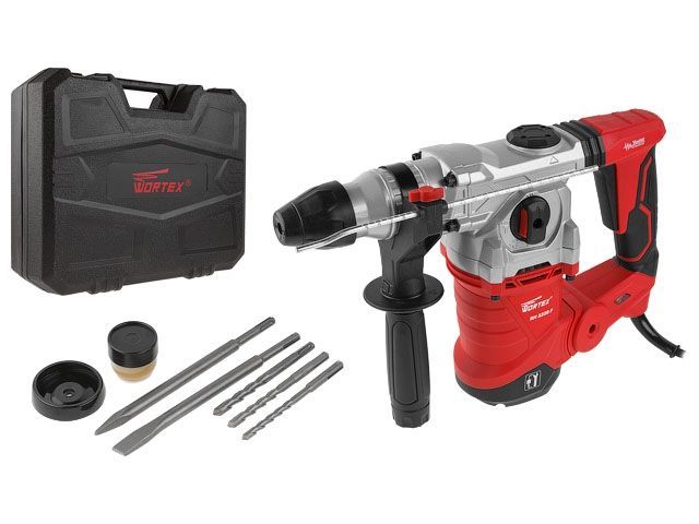 Перфоратор WORTEX RH 3239 F в чем. + (2 зубила, 3 сверла) 1500 Вт, 6.0 Дж, 32 мм, 4 режима, SDS-plus(вес 5.4 кг)