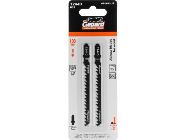 Пилка лобз. по дереву T244D (2 шт.) GEPARD(пропил криволинейный, грубый, быстрый рез)