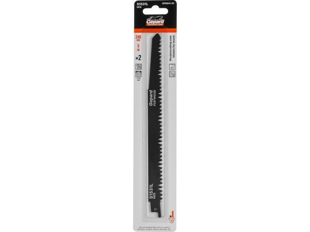 Пилка сабельная по дереву S1531L (2 шт.) GEPARD(240мм, полотно для сабельной пилы, пропил прямой, грубый, быстрый рез)