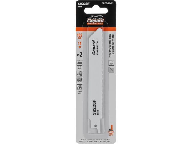Пилка сабельная по металлу S922BF (2 шт.) GEPARD(152мм, полотно для сабельной пилы, пропил прямой, тонкий, быстрый рез)