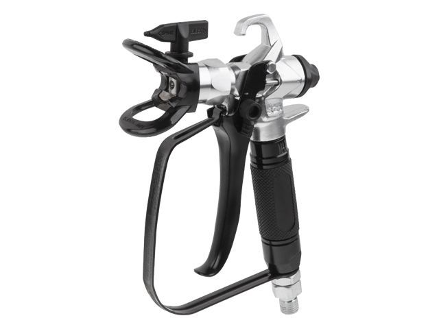 Пистолет покрасочный для безвоздушного распыления лакокрасочных материалов. Ширина факела покраски краски может изменяться в зависимости от сопла (форсунки) установленного на пистолете. Комплектуется соплом 517;