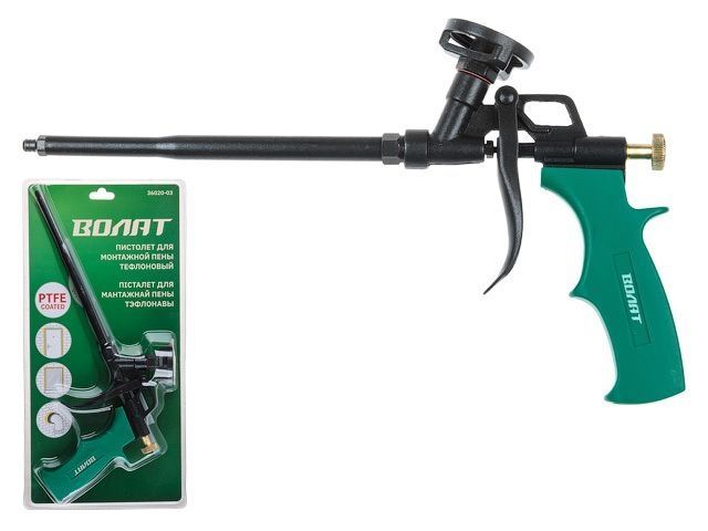 Пистолет для монтажной пены тефлоновый ВОЛАТ(в комплекте 4 насадки)