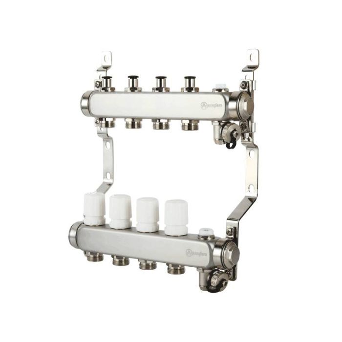 Коллекторные распределительные блоки Aquasfera предназначены для улучшения производительности систем отопления зданий, за счет равномерного распределения теплоносителя по контурам. Коллекторы могут использоваться как в домах индивидуальной застройки, так и в системах отопления многоквартирных жилых зданий, где требуется распределение потока теплоносителя между помещениями на этаже многоквартирного многоэтажного жилого или административного здания. Не используются в водоснабжении. Коллекторные блоки выполняют следующие функции: независимое друг от друга присоединение контуров системы отопления и распределение по ним теплоносителя; гидравлическая балансировка системы в пределах квартиры, обслуживаемой одним коллекторным блоком; регулирование температуры воздуха в отапливаемых помещениях; удаление воздуха из системы отопления и ее дренаж; отключение отдельных контуров и системы отопления в целом. Благодаря многофункциональности коллекторных блоков в отапливаемых помещениях создаются не только комфортные условия для пребывания людей, но и значительно увеличиваются сроки службы оборудования и систем теплоснабжения. Использование коллекторов позволяет контролировать все параметры системы, обеспечивая идеальный баланс. Это помогает избежать лишних затрат и обеспечивает повышенный уровень теплового комфорта. Технические характеристики: максимальная температура окружающей среды: 50°C; резьба под сервопривод клапана: M30x1.5; максимальный перепад давления между клапанами: 1 бар; основной материал изделия: нержавеющая сталь AISI 304.