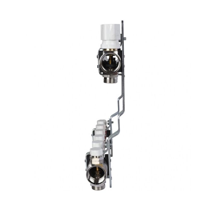 Коллекторы Luxor серии CD 468M предназначены для смешанных систем отопления с контурами для радиаторов и для теплого пола. Коллекторные группы серии CD позволяют равномерно распределять расход теплоносителя, с возможностью регулировки гидравлических потерь. Коллекторная группа в сборе Luxor CD 468M состоит из: 1 подающего коллектора с вентилями, предназначенными для балансировки распределительных веток коллектора; 1 обратного коллектора со встроенными вентилями с маховичком для ручной регулировки. Вентили предусматривают возможность термоэлектрической регулировки при помощи термоэлектрической головки; 2 запорных шаровых кранов с термометрами; 2 концевых узлов в комплекте с контргайкой, латунным кранов слива воды и встроенным клапаном спуска воздуха; 2 металлических кронштейнов. Cоединения с боковыми отводами осуществляется с помощью фитингов с резьбой М24х19 и G 3/4 (евроконус). Все фитинги и принадлежности к коллекторам (вентили выпускные колпачки.и т.д.) снабжены мягкими прокладками. Коллекторы со встроенными вентилями предполагают электротермическую регулировку и могут контролироваться и заменяться в работающей системе.