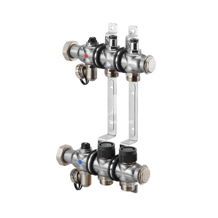 Гребенка из нержавеющей стали Multidis SF для панельного отопления и охлаждения, с вентильными вставками под приводы M 30 x 1,5 и встроенными регулирующими вставками, в смонтированном виде. Предназначена для систем панельного отопления и охлаждения с принудительной циркуляцией. Она также входит в систему панельного отопления “Cofloor”. Присоединение прямого и обратного трубопровода может быть правым и левым. Крепежные хомуты гребенки позволяют закрепить ее в монтажном шкафу или непосредственно на стене. Макс. рабочая температура: 80 °C; Макс. рабочее давление: 6 бар; Макс. перепад давления: 1 бар; Значение kvs: 1,9 м3/ч (тип 140 45,с регулирующими вставками).