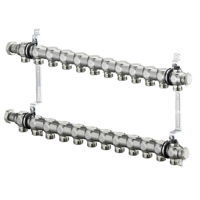 Распределительный коллектор (группа) для отопления Oventrop Multidis SH12 1407162, ВР 1", на 12 контуров, 3/4" ЕК, нержавеющая сталь, нерегулирующий