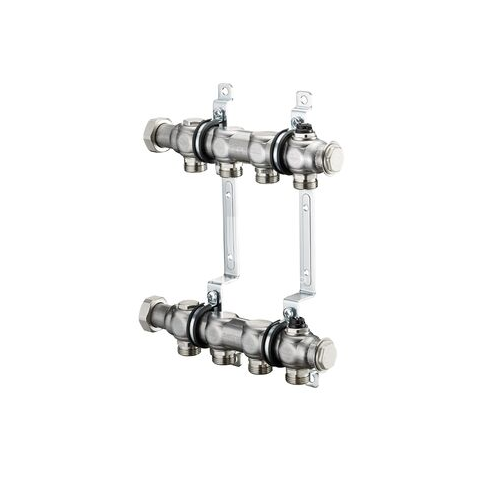 Multidis SH - гребенка из нержавеющей стали для подключения отопительных приборов, в смонтированном виде. Подающий и обратный коллектор из нержавеющей стали с отводами G 3 ⁄ 4 НР (евроконус) для присоединительных наборов Oventrop со стяжным кольцом. На входе и выходе накидные гайки G 1 ВР для непосредственного подключения шаровых кранов с плоским уплотнением. С воздухоспускными пробками G 1 ⁄ 2 , заглушками G 1 ⁄ 2 и торцевыми заглушками G 3 ⁄ 4 . Все латунные части никелированные. Макс. рабоч. температура t: +100°C; Мин. рабоч. температура t: –10°C; Макс. рабоч. давление p: 1000 кПа (10 бар); Значение kvs: 1,5 м³/ч. Гребенки Oventrop устанавливаются в системах отопления с принудительной циркуляцией.Они применяются как для однотрубных, так и двухтрубных систем. В двухтрубных системах отопления каждый вход и выход отопительного прибора с помощью трубопровода подключается к гребенке. Для подключения к одному контуру нескольких отопительных приборов в программе Oventrop имеются присоединительные h-элементы. В однотрубных системах отопления может потребоваться гидравлическая увязка отдельных контуров гребенки. В этом случае на отводах гребенки необходимо дополнительно установить „Combi 2“.