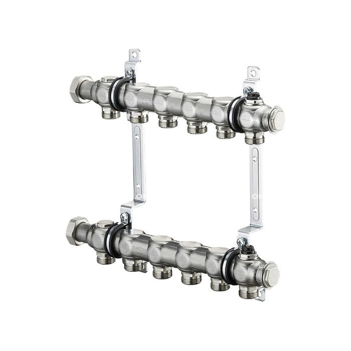 Распределительный коллектор (группа) для отопления Oventrop Multidis SH6 1407156, ВР 1", на 6 контуров, 3/4" ЕК, нержавеющая сталь, нерегулирующий