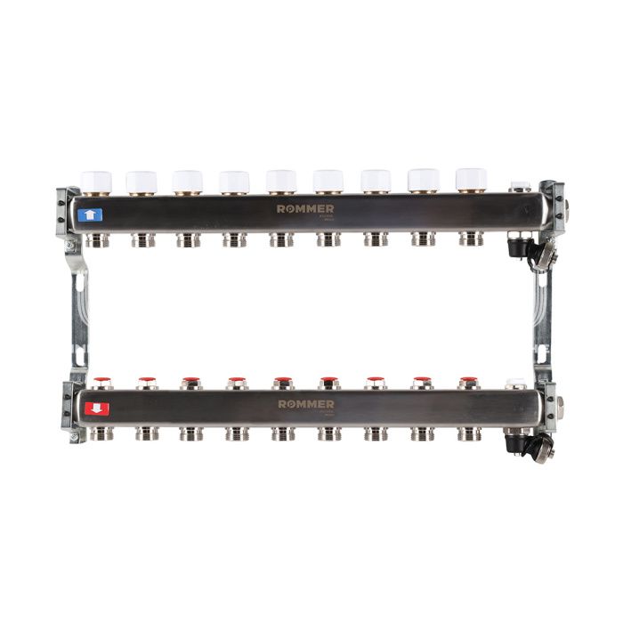Распределительный коллектор (группа) для отопления Rommer RMS-3201-000009 ВР 1", на 9 контуров 3/4" EK, нержавеющая сталь