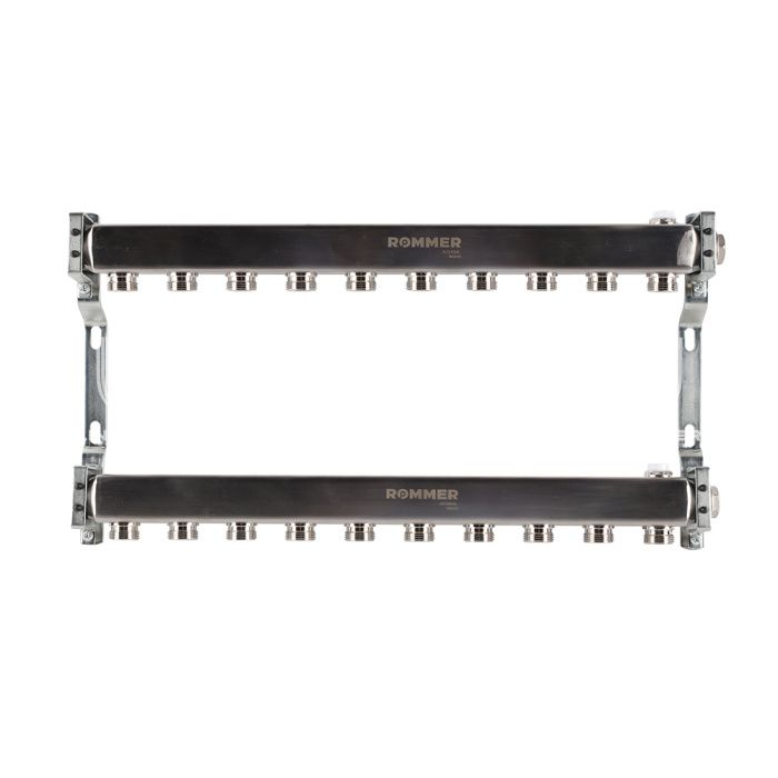 Распределительный коллектор (группа) для отопления Rommer RMS-4401-000011 ВР 1", на 11 контуров 3/4" EK, нержавеющая сталь, нерегулирующий