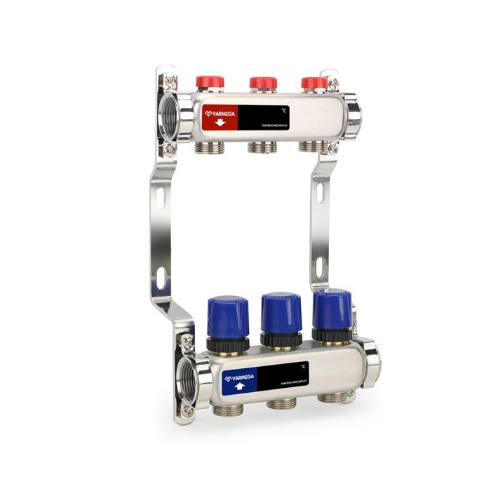 Распределительный коллектор (группа) для отопления Varmega VM15503 ВР 1", на 3 контура 3/4" EK, нержавеющая сталь