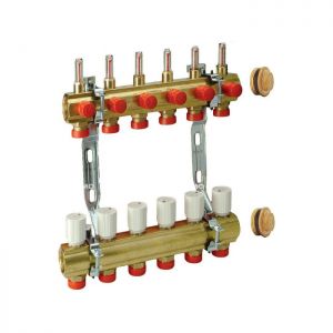 Распределительный коллектор (группа) с расходомерами Giacomini R553KY063 ВР 1", на 3 контура 3/4" EK, латунь