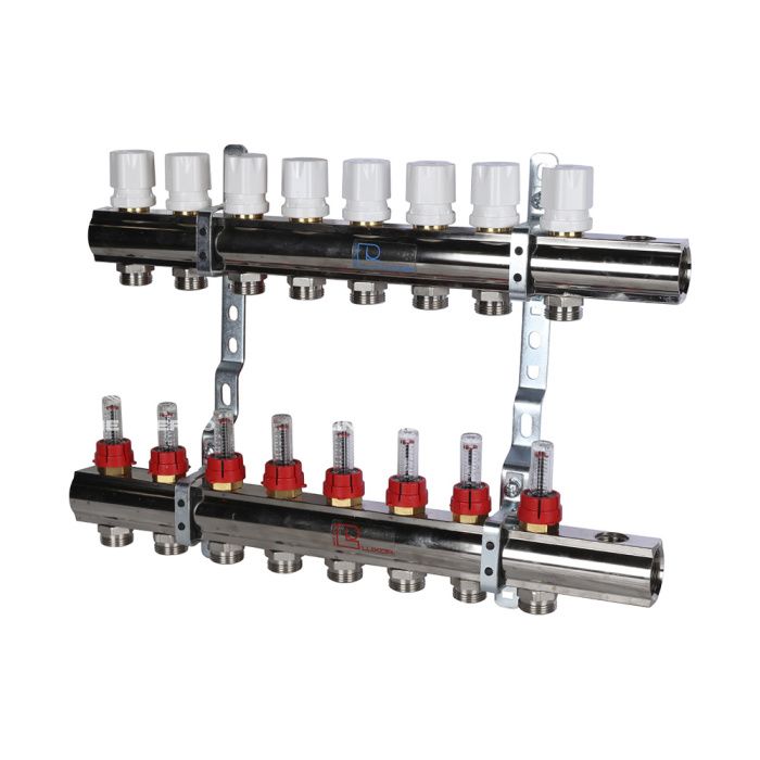 Распределительный коллектор (группа) с расходомерами Luxor 15662708N ВР 1", на 8 контуров 3/4" EK, никелированный