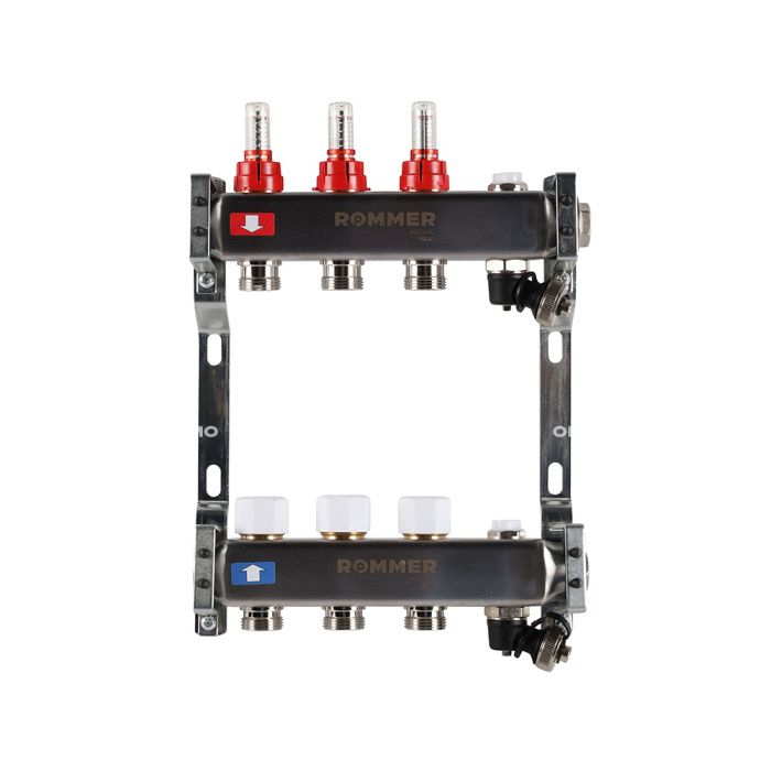 Распределительный коллектор (группа) с расходомерами Rommer RMS-1201-000003 ВР 1", на 3 контура 3/4" EK, нержавеющая сталь