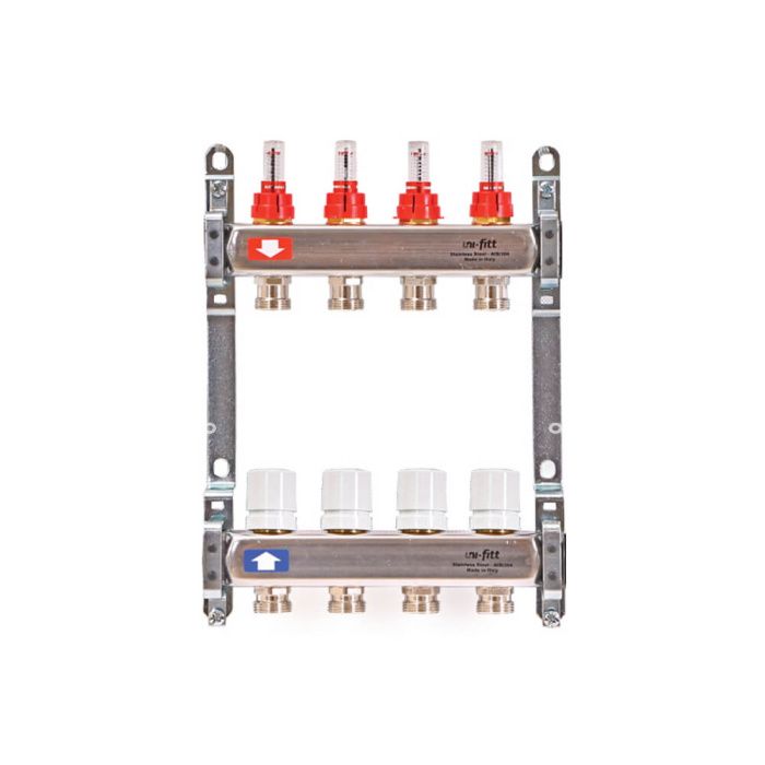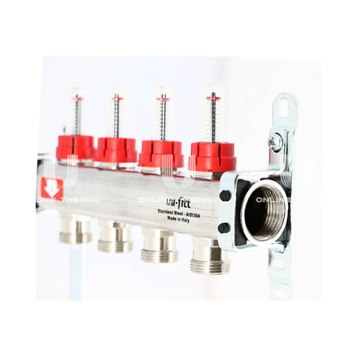 Распределительный коллектор (группа) с расходомерами Uni-fitt 450B4302 ВР 1", на 2 контура 3/4" EK, нержавеющая сталь