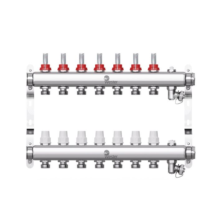 Распределительный коллектор (группа) с расходомерами Wester W902.7, 0-32-1835, 1", на 7 контуров 3/4" EK, нержавеющая сталь