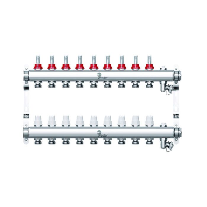 Распределительный коллектор (группа) с расходомерами Wester W902.9, 0-32-1845, 1", на 9 контуров 3/4" EK, нержавеющая сталь