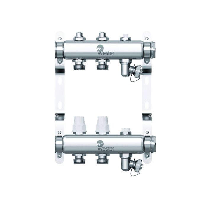 Распределительный коллектор (группа) Wester W903.2, 0-32-1865, 1", на 2 контура 3/4" EK, нержавеющая сталь, с 2 заглушками