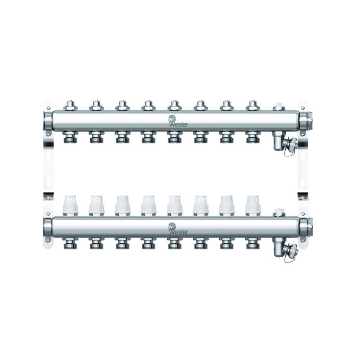 Распределительный коллектор (группа) Wester W903.8, 0-32-1895, 1", на 8 контуров 3/4" EK, нержавеющая сталь, с 2 заглушками