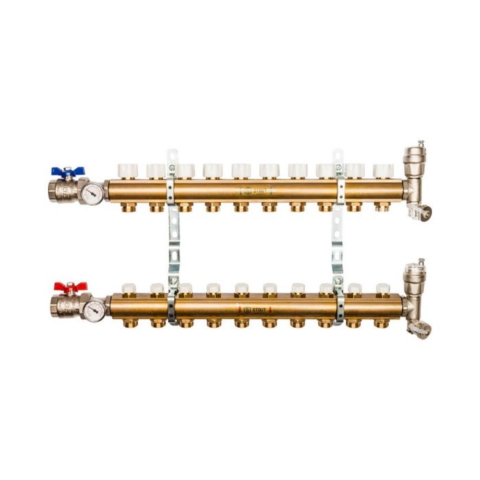 Распределительный коллектор Stout из латуни без расходомеров 10 вых.