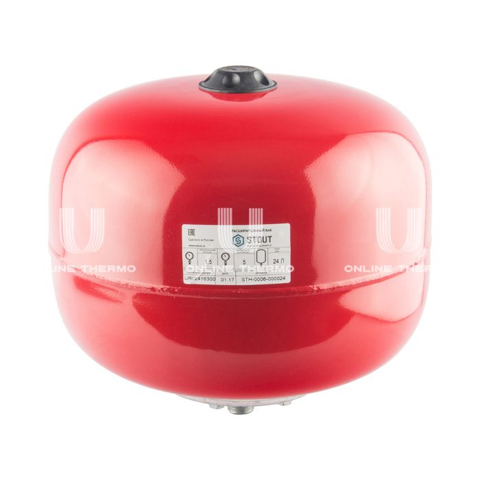 Расширительные баки Stout тип STН (красного цвета) устанавливаются в замкнутых системах водяного отопления зданий и служат для: компенсации тепловых изменений теплоносителя; поддержания статического давления в системе; исключения проникновения кислорода атмосферного воздуха в теплоноситель. Расширительные сосуды могут также использоваться в системах тепло- и холодоснабжения вентиляционных установок. Внутренняя полость мембраны заполняется водой или теплоносителем из присоединенной к баку системы водоснабжения или отопления. Мембраны, изготовленные в форме мешка из резины типа EPDM, отличаются целым рядом преимуществ: большая устойчивость к атмосферным явлениям; имеет эффективный для использования в гидравлических системах коэффициент эластичности; долгосрочная функциональность при номинальной работе системы. В пространство между мембраной и корпусом предварительно закачивается воздух через воздушный ниппель для создания в системе необходимого гидростатического давления, а также обеспечения возможности растягивания рукава в результате увеличения объема теплоносителя в системе отопления при его нагреве.