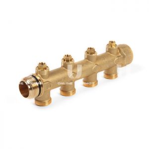 Регулирующий проходной коллектор Giacomini R583SY104, 1" ВР, на 4 контура с отводами, 3/4" НР EK