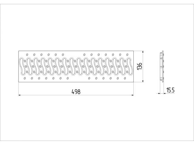 STANDART, Класс нагрузки: А Габаритные размеры Длина, 500 мм (на лоток 2 шт.) Ширина, 136 мм Высота, 16 мм Вес, 0,4 кг При выборе следует учесть, как диаметр отверстий, пластик, так и внешний вид. Именно решетка дренажного лотка, скорее всего, будет видна людям, что дополнительно мотивирует приобрести ее надлежащего вида, не забывая про функциональные возможности. Сейчас не составит особого труда подобрать решетку под разную высоту и размеры лотков. Также производители предлагают достаточный выбор в цвете самих лотков и решеток. Вы может приобрести, как сразу необходимые комплект лоток плюс решетка, так и отдельные комплектующие. Вся продукция имеет необходимые сертификаты качества и степень защиты, как от влаги, так и от попадания ультрафиолетовых лучей.