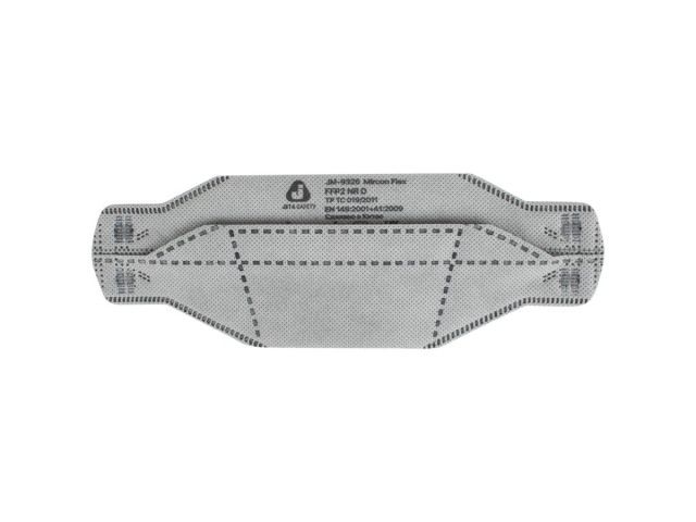 JM-9326 Micron Flex одноразовый противоаэрозольный трехпанельный респиратор с клапаном и дополнительным угольным слоем. Защищает органы дыхания от сварочных паров, микрочастиц стекла, бетона, металлической стружки древесной пыли, штукатурки, строительной пыли в высокой концентрации, стеклянного и минерального волокна, пыльцы, шерсти, бытовой пыли, масляного тумана, жидких аэрозолей и угольной пыли, неприятных запахов. Форма респиратора позволяет носить его в карманах рабочей спецовки. Используется в таких сферах, как сварка, промышленный клининг, строительство и сельское хозяйство, добыча полезных ископаемых, а также при работе с изоляционными и высокоаллергенными материалами, бытовой химией в малых концентрациях, на операциях фрезерования, шлифования, резки и сверлении материалов. FFP2 NR D (ГОСТ Р 12.4.191-99 ССБТ). Особенности и преимущества: Складная трехпанельная конструкция; Угольный слой для защиты от органических газов до ПДК; Алюминиевый носовой зажим высокой плотности; Клапан выдоха MaxFlow с ультразвуковой установкой; Электростатический защитный слой; Классическая конструкция с двумя резинками оголовья; Высокий уровень защиты и низкое сопротивление дыханию; Мягкий носовой уплотнитель; Оптимальный уровень жесткости материала для плотного прилегания и сохранения формы; Устойчивость к повышенному запылению (маркировка D); Индивидуальная упаковка с подвесом для розницы.