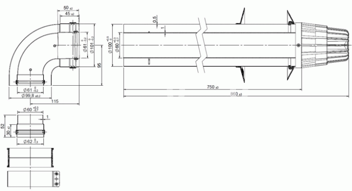 Коаксиальные системы Royal Thermo дымоудаления предназначены для отвода продуктов сгорания и обеспечения притока воздуха через наружные стены здания при построении горизонтальных и вертикальных схем дымоудаления. Коаксиальные системы дымоудаления Royal Thermo представляют собой конструкцию типа «труба в трубе». Внутри трубы диаметром 100 мм находится труба диаметром 60 мм. Удаление дымовых газов из камеры сгорания происходит по внутренней трубе, а забор воздуха для горения осуществляется в зазоре между внешней и внутренней трубами. Коаксиальные дымоходы идеально подходят для частных домов и малоэтажного строительства. Основой коаксиальных систем являются комплекты с диаметром 60/100. ПРЕИМУЩЕСТВА Все коаксиальные дымоходы Royal Thermo производятся по современной технологии лазерной сварки. Элементы коаксиальных дымоходов Royal Thermo имеют раструбные соединения типа «Папа-мама», удобны в монтаже и гарантируют абсолютную газоплотность при дымоудалении. Дымоходы Royal Thermo гарантируют безопасное дымоудаление и имеют все необходимые разрешительные документы, включая пожарный сертификат, сертификат соответствия РСТ, ЕАС, а также европейский сертификат соответствия менеджменту качества ISO 9001. Гарантия на дымоходы Royal Thermo самая большая в Европе и составляет – 5 лет! Стандартные Коаксиальные комплекты подходят к котлам всех известных торговых марок котельного оборудования на территории России.