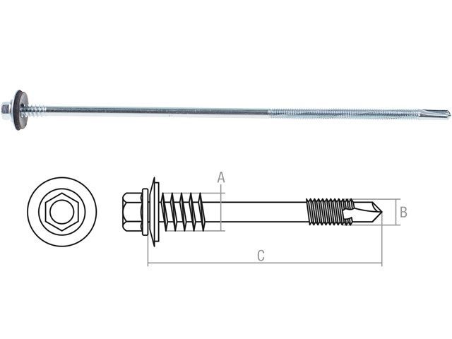 Саморез для сэндвич-панелей 6.3/5.5х205 мм цинк (500 шт в коробе) STARFIX
