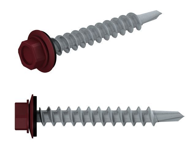 Саморез кровельный 4.8х29 мм цинк, шайба с прокл., PT1, RAL 3005 (5000 шт в коробе) STARFIX(по дереву, цвет винно-красный)