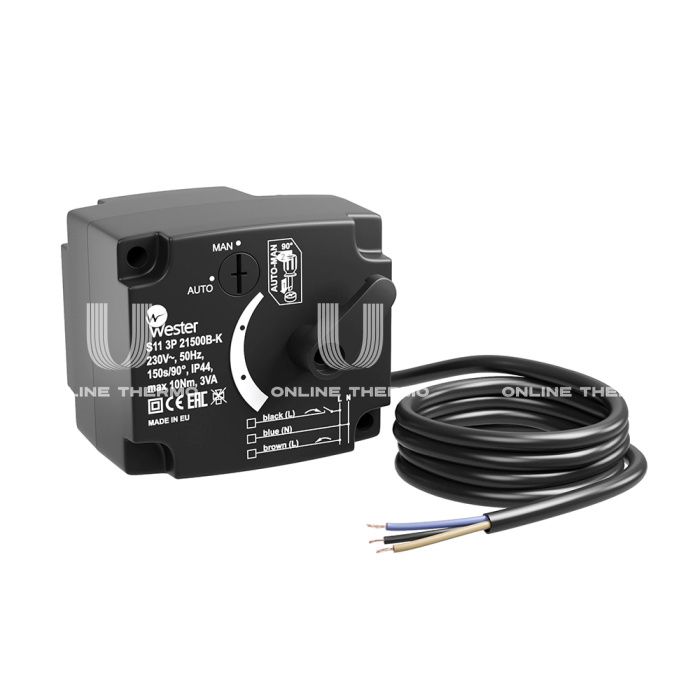 Сервопривод Wester S11 3P 21500B-K для 3-ходовых клапанов, 230 В, 10 Нм, 90°, 150 с, 1.5 м