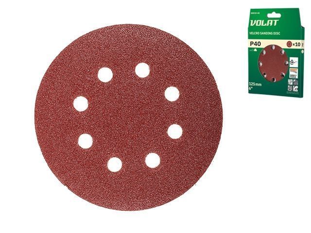 Шлифлист 125мм круг Р 40 д/дерева 8 отв. 10шт. ВОЛАТ(круг абразивный шлифовальный перфорированный)