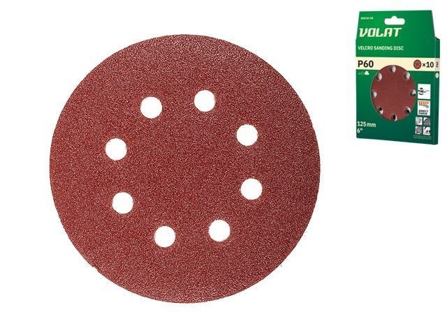 Шлифлист 125мм круг Р 60 д/дерева 8 отв. 10шт. ВОЛАТ(круг абразивный шлифовальный перфорированный)